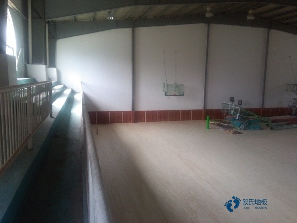 二、場地清掃:籃球館木地板安裝進場前首先檢查地面有沒有做防水,尤其是一層地面,然后對場地進行清掃,鏟除水泥砂漿虛浮物備用。