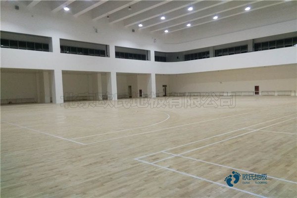 二、場地清掃:籃球館木地板安裝進場前首先檢查地面有沒有做防水,尤其是一層地面,然后對場地進行清掃,鏟除水泥砂漿虛浮物備用。